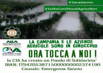 Decine di ettari di vigneti pregiati, che rappresentano parte rilevante del vino in Campania con il 60 per cento del quantitativo regionale, sono scomparsi o finiti sotto un metro di fango provocato dal maltempo che ha flagellato Benevento e la sua provincia. E sono ottantamila le bottiglie di vino Falanghina e Aglianico del Sannio Doc sepolte nel fango a causa dell’ondata di maltempo che ha allagato la Cantina di Solopaca dove si lavora per salvare le pregiate produzioni, per fortuna la vendemmia di quest’anno era già stata svolta ma i problemi ci saranno per il prossimo anno, laddove sorgeva una distesa di vigneti, che non aveva nulla da invidiare alla Toscana, oggi, a distanza di sette giorni dall’alluvione, si vede solo una distesa di fango e delle viti nessuna traccia. Intanto si moltiplicano le iniziative di solidarietà da parte anche del mondo agricolo. La Confederazione Italiana degli Agricoltori Cia ha creato un fondo di solidarietà con Causale Emergenza Sannio ed Iban IT94Z0538715000000002374190 . Dopo #Saverummo è la volta di #Prendicicosì, la campagna creata dalla Cantina di Solopaca che metterà in vendita le oltre sessantamila bottiglie trovate avvolte nel fango, si può contattare la cantina cliccando qui . Una campagna che ricalca quella del parmigiano reggiano sul formaggio terremotato e speriamo che la campagna sannita possa avere eguale fortuna.