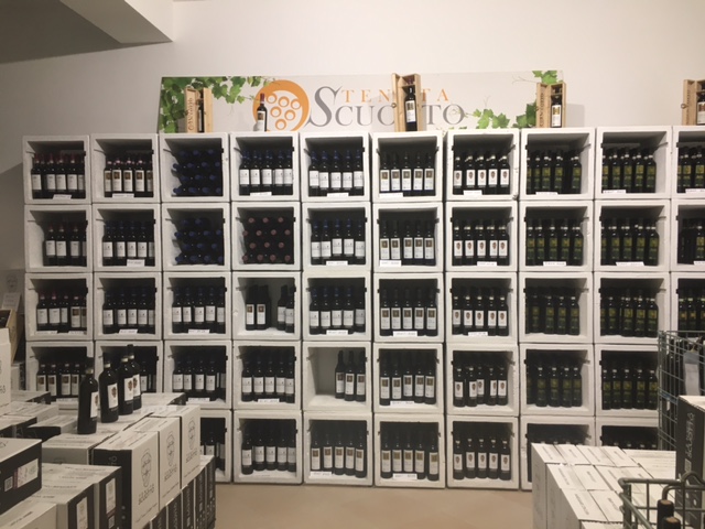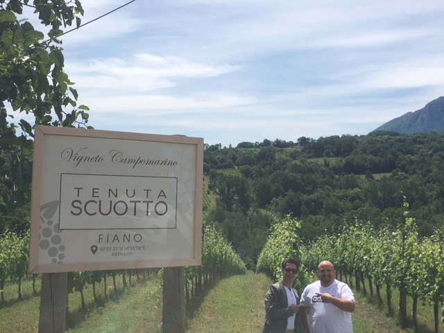 Entriamo nella bella tenuta che costeggia via Campomarino rimanendo colpiti, oltre che dagli ordinati filari a guyot sul terreno argilloso sabbioso del vigneto Campomarino, anche dall’enorme piazzale a balconata sulle vigne in grado di ospitare tanti winelover desiderosi di una importante meta enoturistica, ed è quello che vuol sviluppare e a breve questa azienda, che sta predisponendo molto per bruciare le tappe non solo nella qualità delle proprie etichette, ma anche nella capacità di accogliere in vigna; tante novità nei prossimi mesi riguarderanno il vulcanico Adolfo Scuotto che ci guida in una cantina modernamente strutturata, per terminare in una sala degustazione all’avanguardia e iperfunzionale come poche in zona, gradevole anche dal punto di vista estetico, il tutto dopo essere transitato per il caveau personale della famiglia Scuotto, dove ogni bottiglia dell’azienda è conservata in una memoria del buono, soggetta però anche al consumo personale e dell’ospite di riguardo.