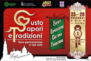 Si chiamerà “Gusto Sapori & Tradizioni” la manifestazione che si svolgerà dal 25 al 28 novembre prossimi in piazza Bartolo Longo a Pompei. Quattro giorni ricchi di grandi eventi che faranno solo da sfondo alla vera e propria esposizione con degustazione di prodotti tipici provenienti dalla Campania e da tutta Italia. Nel corso della manifestazione, i visitatori saranno accompagnati in un viaggio fatto di gusto, sapori vicini e lontani, e soprattutto di tradizioni, anche grazie ai tanti appuntamenti serali, spettacoli e animazione. Durante una delle giornate, “La Vita in Diretta”, fortunato programma in onda ogni pomeriggio su RaiUno, trasmetterà un ampio servizio sulla manifestazione, in diretta da piazza Bartolo Longo. “Gusto Sapori & Tradizioni” è organizzato dalla Crazytime animazione & servizi in collaborazione con Confesercenti Pompei, con il Patrocinio del Comune di Pompei e Acli Pompei. La cittadina pompeiana è una delle località più esclusive della Campania per storia cultura e tradizione, ed ogni anno è meta di milioni di turisti, provenienti da tutto il mondo per visitare Scavi, il Santuario, ma anche le tante bellezze circostanti.