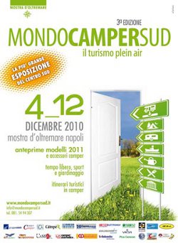 Boom di presenze quello registrato alla terza edizione di “Mondo Camper Sud 2010. Il turismo plein air“, l’evento dedicato ai camperisti d’Italia, e a tutti coloro i quali sposano l’idea di viaggio inteso come incontro tra uomo e natura, ospitata presso la Mostra d’Oltremare Piazzale Vincenzo Tecchio, 52 (Viale Kennedy), a Napoli dal 4 al 12 dicembre 2010.