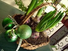 Pensando ai bulbi a fioritura forzata mi è venuta un’idea per il mio centrotavola di Natale in cui dei giacinti avrebbero rappresentato il mio desiderio di primavera…