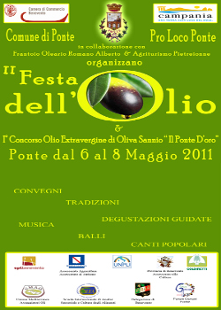 E’ stato reso noto il programma ufficiale della seconda edizione della Festa dell’Olio in programma a Ponte il 6, 7 e 8 maggio 2011.