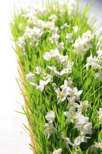 … e questo è il mio centrotavola pasquale… Ricordate il grano (vedi qui) che ho messo a germogliare qualche settimana fa? Dei teneri germogli son diventati un folto prato verde che ancora qualche giorno e dovrò passare anche qui il decespugliatore!:D