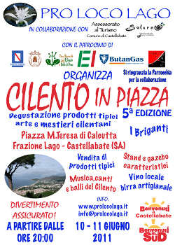Due serate dedicate alla degustazione di prodotti tipici Cilentani e alla mostra dell’ artigianato locale. Tale manifestazione, giunta alla 5a edizione, ha riscontrato un notevole successo, per cui la Pro Loco Lago ha pensato di riproporla cercando di migliorarne alcuni aspetti.