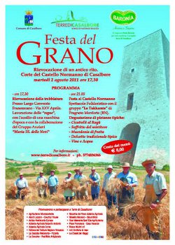 Fitto il programma che spazia dalla Rievocazione della trebbiatura, che si terrà presso il largo del Convento Francescano, alla Festa al Castello Normanno con spettacolo folkloristico del gruppo “La Takkarata” di Fragneto Monforte e degustazione di pietanze tipiche.