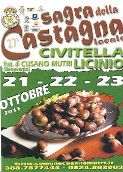 Da domani a Domenica 23 Ottobre, la frazione cusanese di Civitella Licinio ospita la ventisettesima edizione della “Sagra della Castagna locale”.