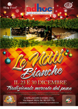 “L’evento Notti Bianche – spiega Giovanni Irollo, patron del centro Ad Hoc di Castellammare – ha avuto un grande successo lo scorso anno, in primo luogo perché si è riusciti a dare un riferimento ad una tradizione storica del territorio, ricreando l’antico mercato del pesce che da sempre aveva base fissa nei porti di Castellammare e Torre Annunziata. Un mercato che avrà come nuova scenografia l’evento delle notti bianche, creato come una grande festa per ristoranti, alberghi e alimentaristi della zona, che qui possano assaggiare la tradizione e allo stesso tempo rifornirsi di prodotti freschi prima dei due cenoni di vigilia di Natale e Capodanno”.