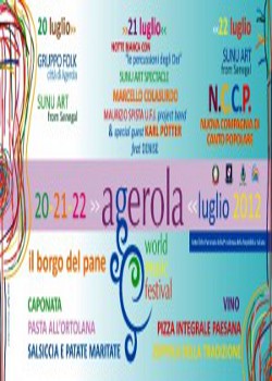 Tra contaminazioni sonore e piatti a km0, essi viaggeranno nel tempo, si cimenteranno in escursioni naturalistiche con gli amici della FIE di Agerola, parteciperanno ad approfondimenti sulla biodiversità locale e a corti letterarie. Per tre giorni la frenesia del quotidiano cederà il passo alla pienezza della natura e alla saggezza della cultura contadina: il corpo, la mente e lo spirito ne saranno rigenerati. Ma la catarsi sara’ completa solo il 22 luglio quando, tutti in piazza, ci si lascerà travolgere dai colori accesi e dai ritmi irrefrenabili del Sud del Mondo, in un elettrico rito propiziatorio di arrivederci al 2012.