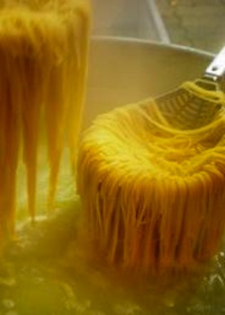 Lavorazione della pasta artigianale in loco, ad opera dei maestri pastai;