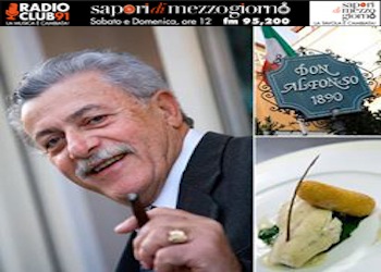 Colpo grosso di Sapori di Mezzogiorno di RadioClub91 che domani trasmetterà in diretta dal mito dei miti della cucina campana: il pluristellato ed ineguagliabile “Don Alfonso 1890”.Il prestigioso locale della famiglia Iaccarino ospiterà, nell’incantevole cornice di Sant’Agata sui Due Golfi, i privilegiati “compagni di merende”.L’avvocato gourmet Sergio Sbarra racconterà nel corso del programma Sapori di Mezzogiorno la leggendaria storia della più famosa tana partenopea della cucina. Un appuntamento da non perdere, di alto profilo culturale, da segnare in rosso sull’agenda. Sapori di Mezzogiorno è il format su tutto il buono della Campania ideato da Roberto Esse con le considerazioni intelligenti del professor Vincenzo Peretti e le incursioni in cucina dell’avvocato gourmet Sergio Sbarra. Non mancherà la degustazione sensoriale dello spirito di-vino Nando Polverino De Laureto. Appuntamento sabato e domenica a mezzogiorno sulla frequenza di 95,2 oppure in streaming su www.club91.it.