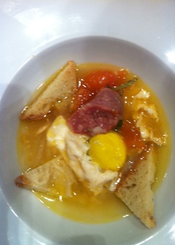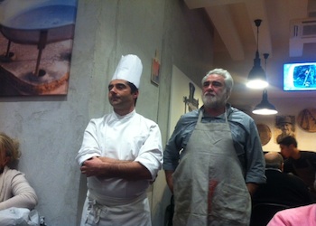 Una serata che ha voluto omaggiare il territorio di Terra di Lavoro, ed in modo particolare, quello straordinario scrigno di ricchezze enogastronomiche che è l’alto casertano: questa in sintesi la cena di mercoledì 28 Gennaio presso il Bistrorante Morsi e Rimorsi, in Via G.M. Bosco a Caserta, che ha avuto come protagonisti gli Chef resident Giuseppe Daddio e Antonio Tedesco, con la partecipazione straordinaria di un grande interprete della cucina contadina, ovvero lo chef Berardino Lombardo , titolare de “ Il Contadino “ a Caianello. Morsi E Rimorsi davvero porta, come dice il claim, I Terroni in Cucina e lo fa costruendo un’accoglienza non banale, a cominciare dall’arredamento elegante e funzionale, un salotto buono di casa, pronto ad aprire le sue cucine, predisposte alla vista degli ospiti con una bella vetrata. Morsi e Rimorsi è nato da tre mesi, grazie alla passione ed al saper fare dei fratelli Capece, napoletani trapiantati da decenni a Caserta, imprenditori e professionisti alla prima sfida con il mondo della ristorazione, ma con una lunga esperienza gourmet in giro per l’Italia, con la scelta sapiente di affidarsi ad uno chef esperto e di gran carriera come Giuseppe Daddio. Non solo chef, ma anche partner di prima qualità, nella scelta dei prodotti, nella volontà di conoscere e far conoscere ai propri ospiti chi produce e in che modo. Peppe Daddio ci spiega il concept del locale,” non un solito ristorante ma un Bistrorante, nel senso di concentrato di qualità, data dall’abilità nelle preparazioni e negli acquisti dei prodotti di eccellenza, e di capacità aziendale, derivata dalla sagacia imprenditoriale dei fratelli Capece. “ Un locale costruito senza scopiazzamenti, nè omologazioni- spiega Daddio-con tanta identità da trasmettere agli ospiti.” Morsi e Rimorsi, a breve anche pizzeria a Caserta, tra qualche mese sarà presente anche a Milano. La star della serata, senza ombra di dubbio, è stata Berardino Lombardo, che ha proposto tre dei suoi piatti-racconto dell’alto casertano, un territorio che lui narra antropologicamente, con la sua presenza e la sua cucina trasmettendo la semplicità dei propri avi.Piatto della nonna per antonomasia è l’Uovo a susciello, pietanza di chi rientrava in casa dal lavoro in campagna e con quello che aveva a portata di mano si nutriva: uovo, un tocco di “sausiccia” la salsiccia del