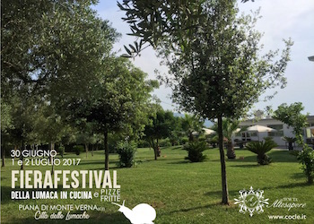 Il Fierafestival della Lumaca in Cucina nasce perchè la chiocciola da gastronomia, a Piana di Monte Verna, è la protagonista del territorio da 10 anni. In questa terra dell’alto Casertano, immersa nel Verde delle colline del Medio Volturno, sorge l’allevamento di Coltivazione di Lumache a Ciclo Biologico Completo, nato nel 2007 – “Parco Coclè” Ogni estate, da diversi anni a questa parte, l’idea migliore che ci sia, è festeggiare la lumaca raccolta in questo allevamento; con piatti sempre innovativi – mescolati a cultura, tradizione ed estro creativo. Tutto questo in una location d’eccezione, tra gazebo e ombrelloni della Tenuta Altosapore di Piana di Monte Verna. Una struttura Ricettiva immersa nel verde, tra piante di olivo, relax e leggera brezza estiva. Non una sagra, bensì l’evento estivo che racconta la gastronomia di un prodotto così radicato in questa terra. il Fierafestival offre menu a prezzi popolari sia a base di Lumache, che piatti alternativi senza lumache. il tutto accompagnati da Musica dal Vivo tutte le sere. Una delle novità di quest’anno, sono le Pizze Fritte preparate da sapienti mani Napoletane. Quest’anno saranno presenti anche stand e produttori di eccellenza del Territorio: l’Azienda Olivicola Ragozzino/De Marco di Pontelatone, che con il suo olio offrirà un valore aggiunto ad ogni piatto del Festival il Micro Birrificio Artigianale -MBA-, di Piana di Monte Verna, che con la sua birra artigianale alla spina potrà essere di grande accompagno ai piatti. il Caseificio la Teresina, di Piana di Monte Verna, con i suoi prodotti di Fattoria, lavorati a Km zero il Caseificio la Baronia, di Castel di Sasso, con i suoi gelati creati con Latte di Bufala Parco Coclè offre stand espositivi con la linea del Fresco e del conservato della chiocciola da gastronomia. Saranno inoltre presenti stand espositivi dedicati alla cosmesi con bava di Lumaca – Coclè Ischia – da 6 anni eccellenza espressamente campana di creme a base di Bava di Lumaca totalmente naturali. Punti informativi saranno disponibili per chi desidera meglio conoscere il mondo dell’Elicicoltura (allevamento di lumache). Parco Coclè, oltre ad essere azienda di coltivazione di lumache da gastronomia, è il Centro di Elicicoltura, che opera in collaborazione con l’Istituto Internazionale di Cherasco (cuneo), per il Centro Sud Italia ed Isole. L’importanza che Parco Coclè e la lumaca ricoprono da ormai 10 anni a Piana di Monte Verna, hanno reso questa realtà – “Città delle Lumache” – e premiato chef locali con i massimi riconoscimenti del settore. Tutte le serate del Fierafestival sono accompagnate da Musica dal Vivo, sempre piacevole e leggera. il Fierafestival della Lumaca in Cucina è organizzato da Parco Coclè, Filiera Lumache Italiane e l’associazione CVT (Centro Valorizzazione Territorio). il Fierafestival si tiene a Piana di Monte Verna, presso la Tenuta Altosapore – Via Campanelle (nelle prossimità del nuovo Campo Sportivo) il 30 giugno (a cena – dalle ore 19.00) e l’1 e il 2 di Luglio (a pranzo e a cena). Gradita la Prenotazione
