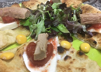 specialità di cui si è finora sentito solo parlare. Vengono sfornate in pochi minuti, alla fila in attesa già nella primissima serata, Brontese con Mortadella, Cetara dop , il Casertano, ovvero con maiale nero,porcini provola e mozzarella, la Sofia, ricordando la pizza che la dea di Pozzuoli mangiava nelle pizzerie italiane di New York, con Provola affumicata, pomodorino del piennolo e crema di pesto, e poi due creazioni che Luca ed i suoi collaboratori confezionano per noi; La Carpaccio di Polipo vede la presenza anche Lupino Gigante di Vairano, che per la prima volta vediamo usare con dovizia in pizzeria, una freschezza che si unisce alle fette di limone, olio aromatizzato al limone, rucola, mozzarella fresca e carpaccio di Polipo. Una pizza molto gettonata dai clienti in estate. L’impasto, con le farine Petra, è un letto sontuoso su cui “coricare” questi straordinari prodotti. Dall’alto casertano si va in Irpinia, con la Pizza Genovese ed il preparato Antica Ricetta di Napoli con Cipolla ramata di Montoro, nel rispetto della ricetta tradizionale napoletana, adagiata vi è una burrata freschissima, il piatto è guarnito da un arancia lavorata che fa capire subito di trovarsi di fronte un artigiano che è diventato pizzaiolo dopo un percorso lungo di studio iniziato in cucina come cuoco, anche all’estero; la passione per impiattamenti di eleganza tradisce la formazione di Luca, una maestria che ingolosisce il cliente e lo invoglia a provare sempre di più nuove creazioni, nuove elaborazioni della tradizione. Luca ha grandi progetti e dall’asporto aprirà una grande pizzeria a breve, sempre nella sua amata Macerata Campania, per soddisfare le tante richieste dai clienti sempre più affascinati dalla sua Pizza Gourmet vissuta come stile di vita e percorso di educazione alimentare, che dagli impasti leggeri apre il mondo delle eccellenze da alta cucina nel modo migliore e a costi accessibili. Cuore,passione,studio, ciò che Luca ripete ai suoi collaboratori e ripete a se stesso ogni giorno, queste caratteristiche, per chi non fosse ancora giunto in Via Trieste a Macerata Campania, sarà possibile anche tastarli con mano al Pizza Show di Casolaro Hotellerie al Cis di Nola giovedì 7 settembre dalle ore 12.00, dove Luca Doro&dop proporrà anche una nuova arrivatat, la pizza alla Canapa Sativa. Ad Maiora !