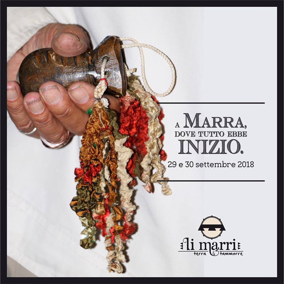 11 anni d’impegno, di tempo, di soddisfazioni e di sorrisi. 11 anni di lì Marri, terra e tammorre, racchiudono molto più di un semplice numero. Sul palco di Marra si sono susseguiti artisti che hanno portato e divulgato, regalato con grande prodigalità la loro cultura, un pezzo di ognuno è rimasto lì sul sagrato della chiesa, attaccato alle pietre e ai muri, nell’aria che si respira in questo piccolo pezzo di mondo. [ ] Non esistono a Marra ospiti ed organizzatori, a Marra esistono gli amici che incontrano altri amici, alcuni suonano, altri danzano altri ancora si occupano del cibo che poi tutti insieme condivideranno.