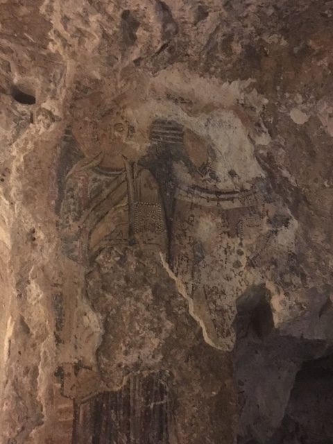 Davvero notevoli gli ipogei del Castello: una cantina ubicata in ex granai datati fine 1700 dove si trovano barrique destinate al Pallagrello Nero e Bianco di Castello Ducale Igp, il percorso sotterraneo stupisce ancora quando, lasciata la cantina, rende possibile la visita ad una chiesa rupestre per il culto micaelico in epoca longobarda; grazie alla Pro Loco di Castel Campagnano, con Letizia De Crosta, scopriamo la storia del luogo, accessibile per ora solo dal Castello, si tratta di una cavità legata alla necropoli cristiana del XIV secolo, le cui testimonianze sono presenti in una bolla episcopale del 979 d.C. in cui si fa riferimento a tre edifici sacri. Tra i vari affreschi, particolarmente raro è quello in cui è ritratto l’Arcangelo Michele col globo, simboleggiante il dominio di Cristo sulla terra.