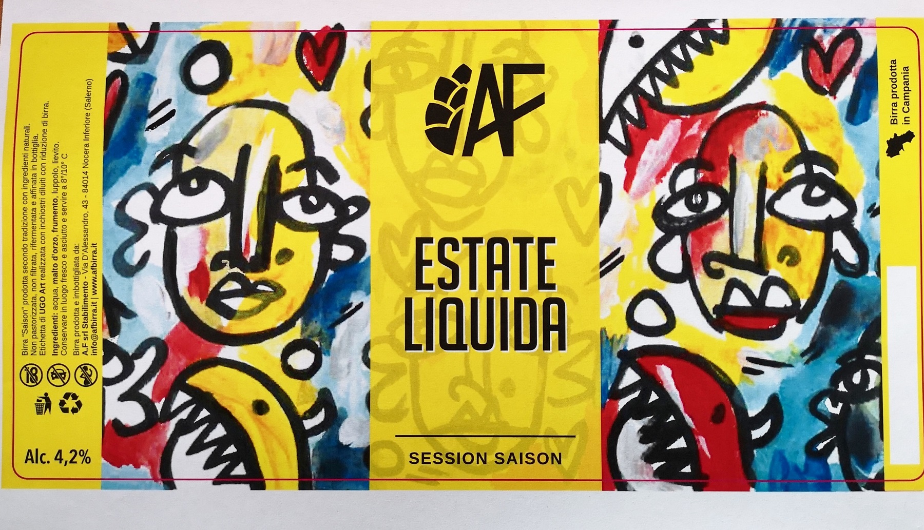 Leggera e beverina, una Session Saison di poco più di 4 gradi, la cui etichetta è stata realizzata con una riduzione di birra artigianale dall’artista Hugo Art.
