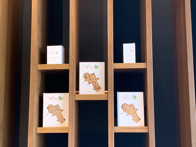 Destinato al consumatore al dettaglio, ma anche punto di accoglienza per i tanti pasticcieri e ristoratori di buon livello che costituiscono la clientela dell’azienda, lo store ci insegna anche quanto questo frutto, impropriamente identificato col Piemonte, abbia nelle nostre terre la sua radice reale, a cominciare dal nome scientifico “Corylus Avellana” appunto, dalla zona di Avella, tra l’Irpinia ed il nolano.