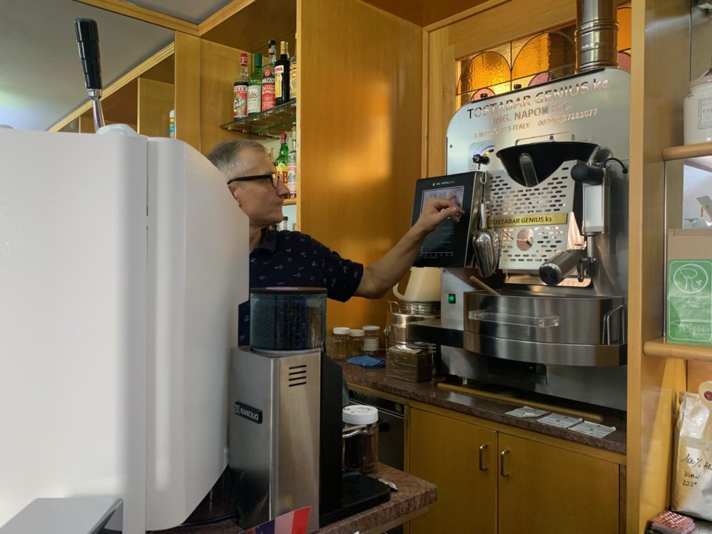 In bella mostra nel Bar anche la macchina utilizzata per tostare, tra le più funzionali e rare sul mercato della torrefazione artigianale.