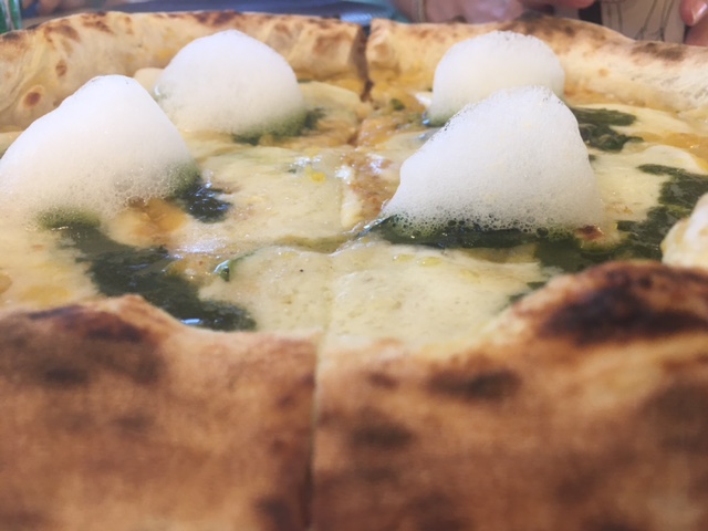 Di buon livello anche i classici come la pizza napoletana con Pomodoro San Marzano DOP, fior di latte di Agerola, basilico, olio extravergine di oliva, novità con la Delicato Sorrentino : Pomodorini gialli in succo, parmigiano reggiano Dop 26 mesi, mozzarella di bufala, schiuma di bufala, olio al basilico, zest di limone, mentre è di felice emotività il percorso padellino: