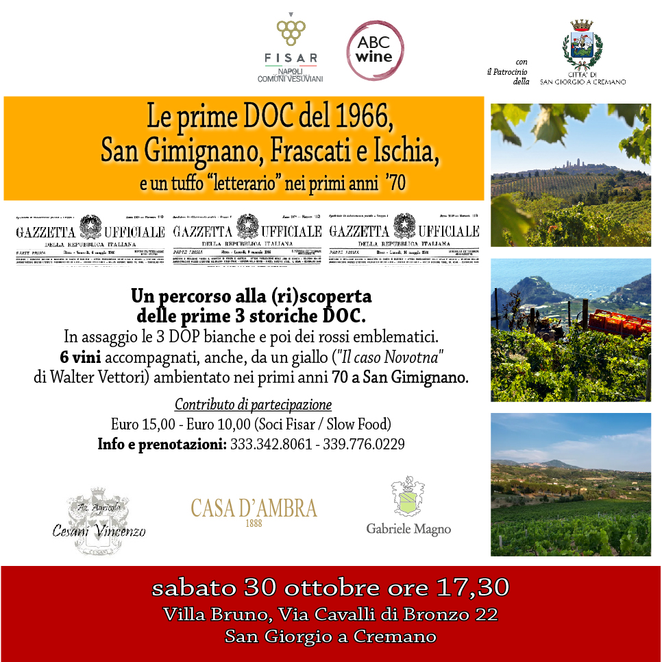 Navigazione articoli Le prime Doc del 1966, San Gimignano, Frascati ed Ischia in un evento Fisar -Abc Wines