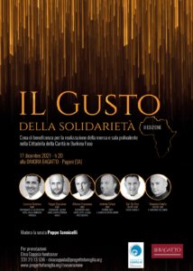 Si terrà domani sera 17 dicembre 2021 presso la Dimora Bagatto a Pagani (SA) la cena di beneficenza promossa dalla Federazione Progetto Famiglia. La finalità della serata è la realizzazione della Mensa e della sala polivalente nella Cittadella della Carità in Burkina Faso, un’opera di carità immensa della Fraternità di Emmaus, movimento ecclesiale presente già da molti anni nel Paese dell’Africa subsahariana.