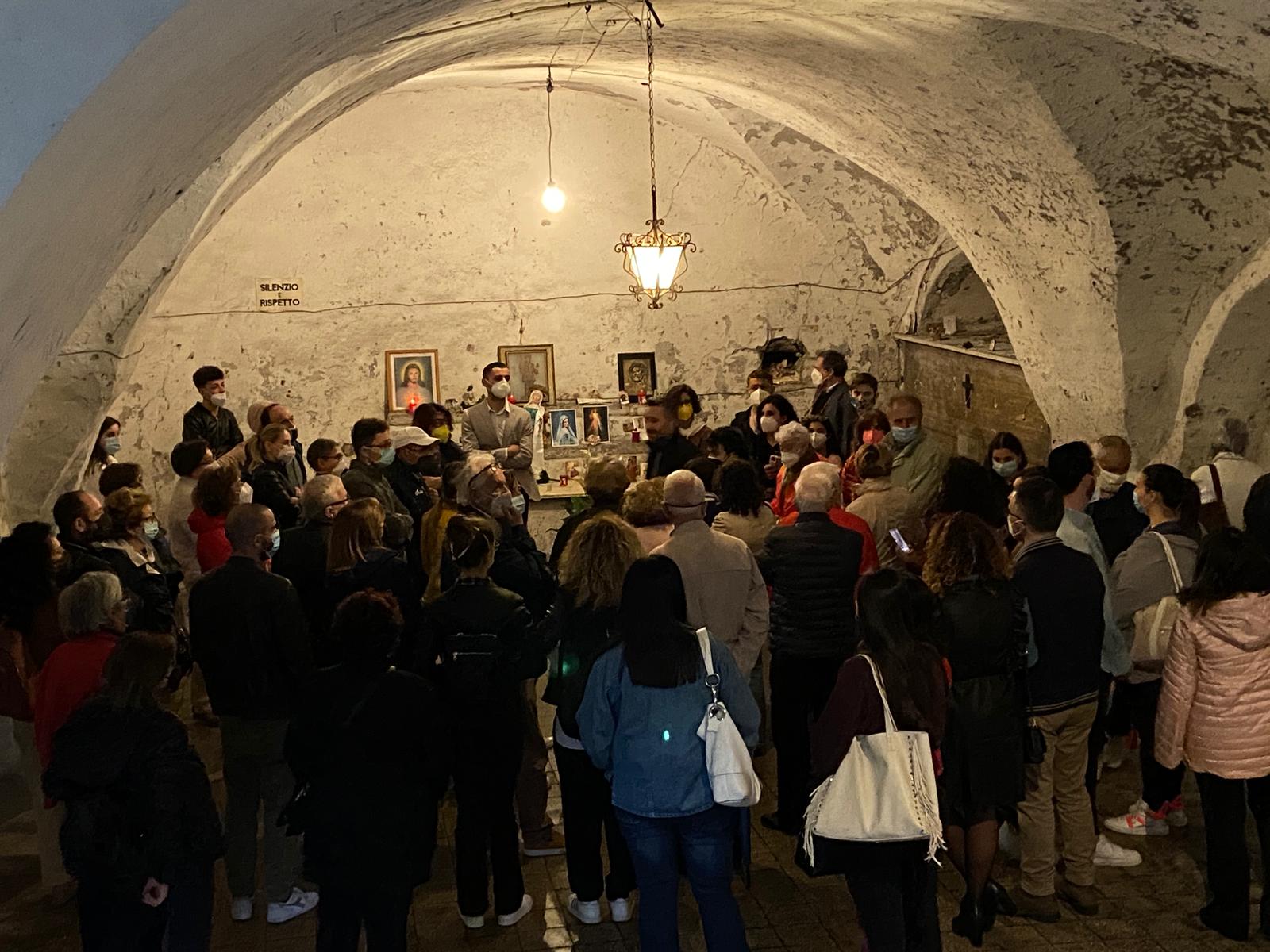 Introdotta da Francesca Amirante e condotta da Raffaele Siciliano dell’associazione CosDam ODV, la visita si è sviluppata in uno dei luoghi più evocativi del culto delle anime del Purgatorio.
