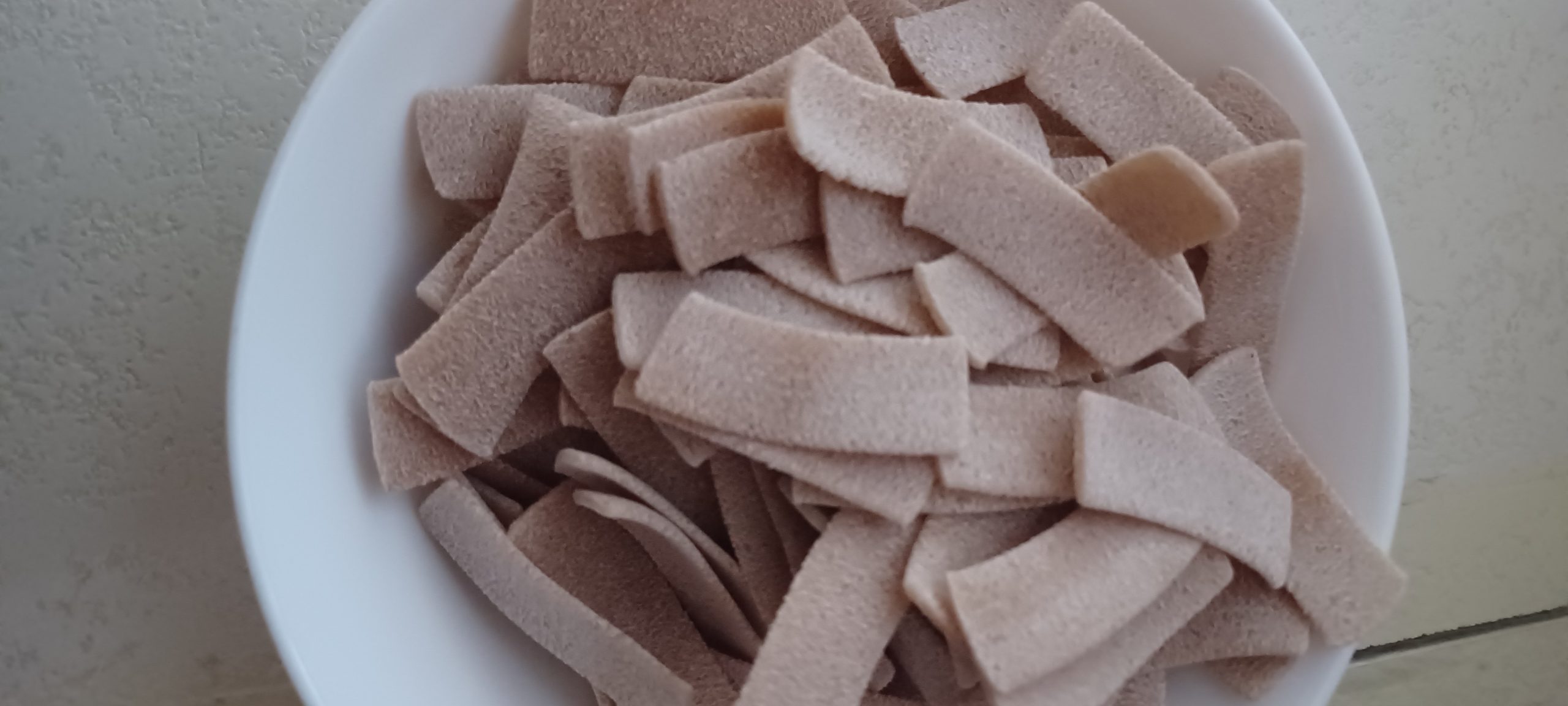 Da poco si lavora ad una produzione di grano ricco di fibre e senza concimi o pesticidi con pochissimo glutine rilevato nelle analisi, inferiore a 5 mg per kg. Siccome la natura sa fare grani duri e teneri di varietà tradizionali del territorio, si dà vita alla pasta semintegrale che colpisce per i suoi profumi e i suoi intensi sapori.