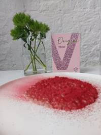 Il riso utilizzato dallo chef Luigi Salomone è una varietà nuova in commercio scoperta dalla Riseria Vignola: Valeré. Coltivata nel vercellese è commercializzata in esclusiva da Riseria Vignola in tre referenze declinate per colore: una di queste è proprio di colore rosa puro, a completa raffinazione, ideale per risotti con un tempo di cottura tra i 12 e i 14 minuti. La varietà qui citata è una delle referenze della gamma ORIGINI, dedicata alla fascia di ristorazione medio alta con qualità di performance identiche al riso Carnaroli, ma con un tempo di cottura più rapido.