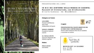 Mercoledì 14 Giugno alle ore 17.00 si presenta al Real Sito di Carditello il libro di Carlo Scatozza “ In Bici nei dintorni della Reggia di Caserta”. Una location non casuale ma raccontata tra i 17 itinerari/capitoli dal giornalista casertano in un itinerario ad hoc : “Da Reggia …a Reggia, a Carditello attraverso la Piana Campana.” Questo di Carditello– dichiara Scatozza- anche con la narrazione dei giorni del suo riscatto, racconta più di altri tour la bellezza del passato e la proiezione al futuro della grande