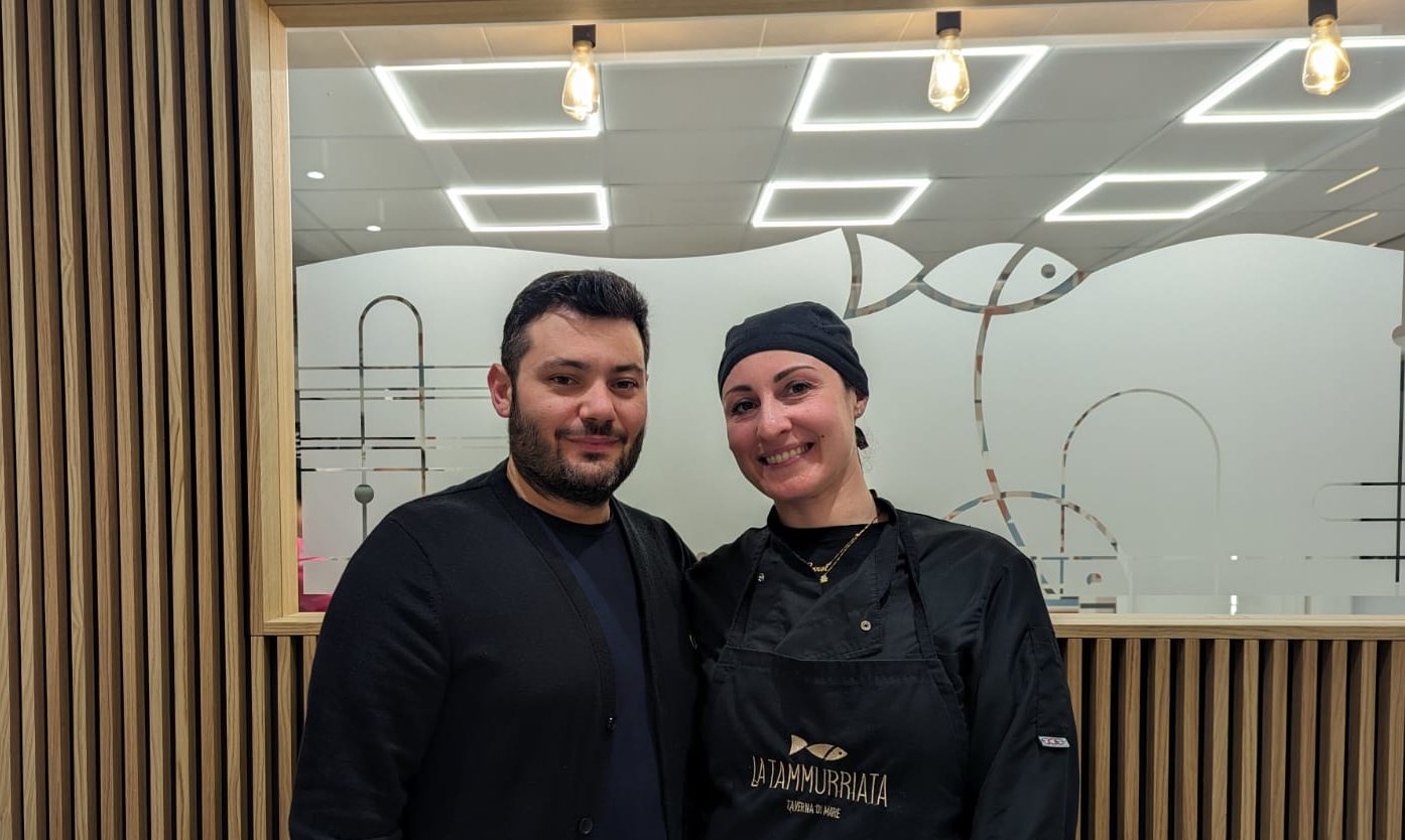 Il ristorante “La Tammurriata” di Bellona (Caserta) è uno di quei casi in cui si può agevolmente affermare che la cucina di mare non è una prerogativa esclusiva delle località rivierasche. L’entroterra campano ha dimostrato più volte di saper trattare la fauna marittima con lo stesso rispetto e maestria di chi, per naturale vocazione e per ragioni squisitamente territoriali, ha sviluppato una esperienza culinaria millenaria in questo settore della ristorazione. Lo sanno bene e sono molto lieti di mostrarlo ad una clientela sempre più ampia la coppia di vita e di lavoro costituita da Marina Bonomo e Salvatore Mascia che mettono in piedi questo progetto già a partire dal luglio del 2018 a Vitulazio, sempre in provincia di Caserta, aprendo una piccola osteria con circa 30 coperti. Per diventare un punto di riferimento degli amanti della ristorazione di mare, però, sono ben consapevoli che bisogna puntare su di una materia prima di altissimo livello, attraverso l’approvvigionamento di pesce freschissimo e di prima scelta. Per questo motivo Salvatore partecipa quotidianamente all’asta del pesce di Formia assicurandosi il miglior pescato del giorno. La materia prima, così faticosamente conquistata, diventa poi elemento di base con cui la chef Marina elabora e trasforma in preziosi piatti per il palato dei loro clienti. Il successo ottenuto a Vitulazio spinge Salvatore e Marina a trasferirsi in una location più ampia, moderna, luminosa e con un comodo parcheggio. Così nel novembre dello scorso anno aprono a Bellona la “nuova” Tammurriata che può contare su 55 coperti interni a cui presto si aggiungeranno circa 80 sedute all’esterno, per la gioia degli amanti della ristorazione “en plein air”.