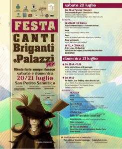 Convegni, rappresentanze teatrali, mostre d’arte, danze, video, visite guidate, stand letterari e concerti storici: questo e molto altro animerà Canti, Briganti e Palazzi Pop, la festa dedicata al mondo del brigantaggio in programma domani, sabato 20 luglio, e dopodomani, domenica 21 luglio, nel centro storico di San Potito Sannitico.