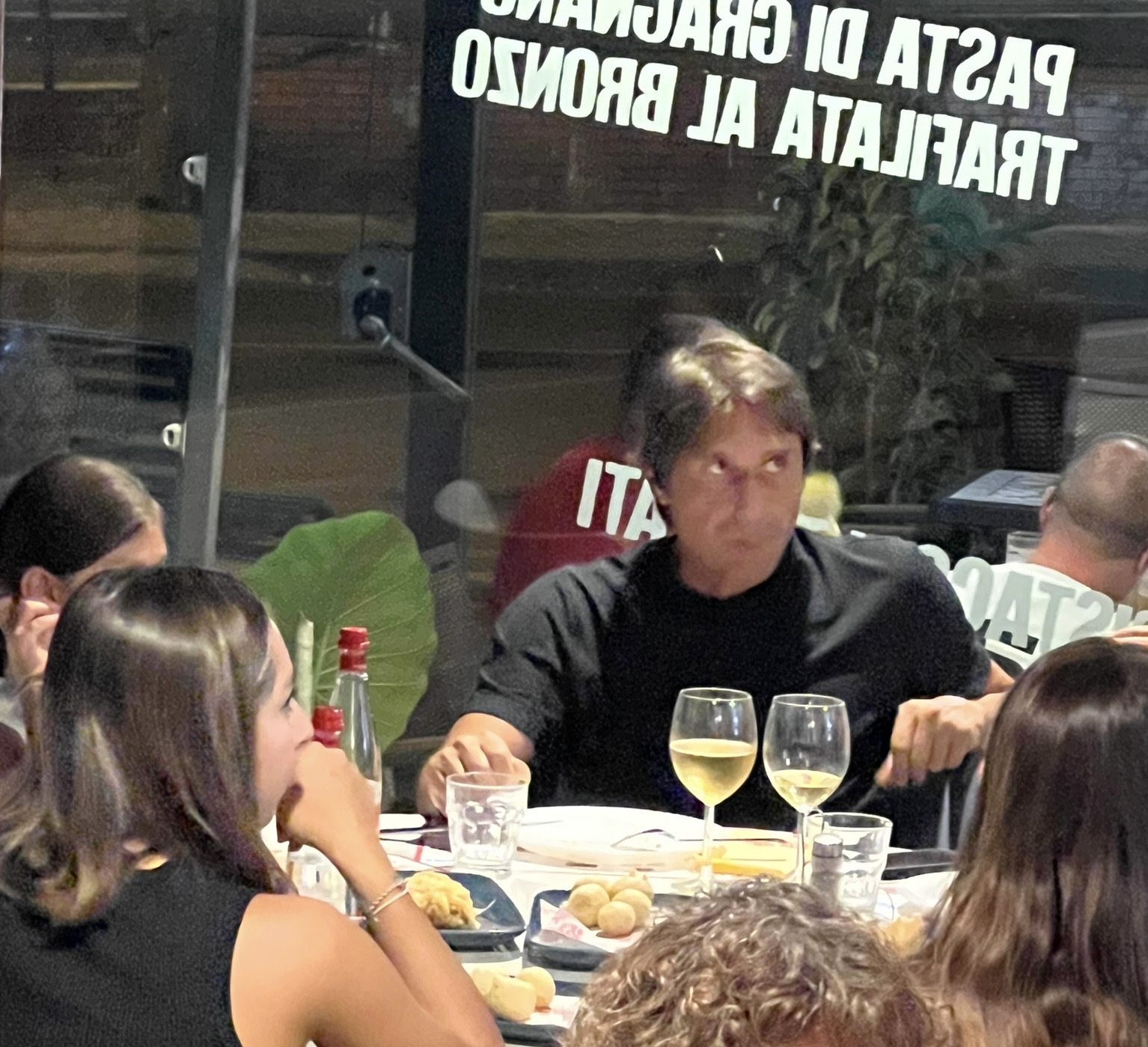 Accolti dal gestore del locale (che per l’occasione aveva indosso lo stesso outfit del mister del Napoli), Conte ha ordinato pizze e antipasti.