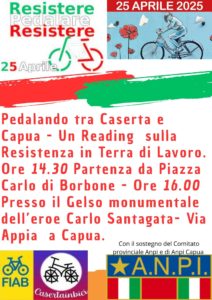 Resistere”. Con partenza da Piazza Carlo di Borbone a Caserta alle ore 14.30 si raggiungerà la Via Appia poco prima dell’ingresso a Capua, dove si sosterà nei pressi dell’Albero Monumentale, un antico Gelso, dove fu impiccato dalla furia nazifascista il giovanissimo Carlo Santagata, medaglia d’Oro della Resistenza. ( Partecipazione libera).