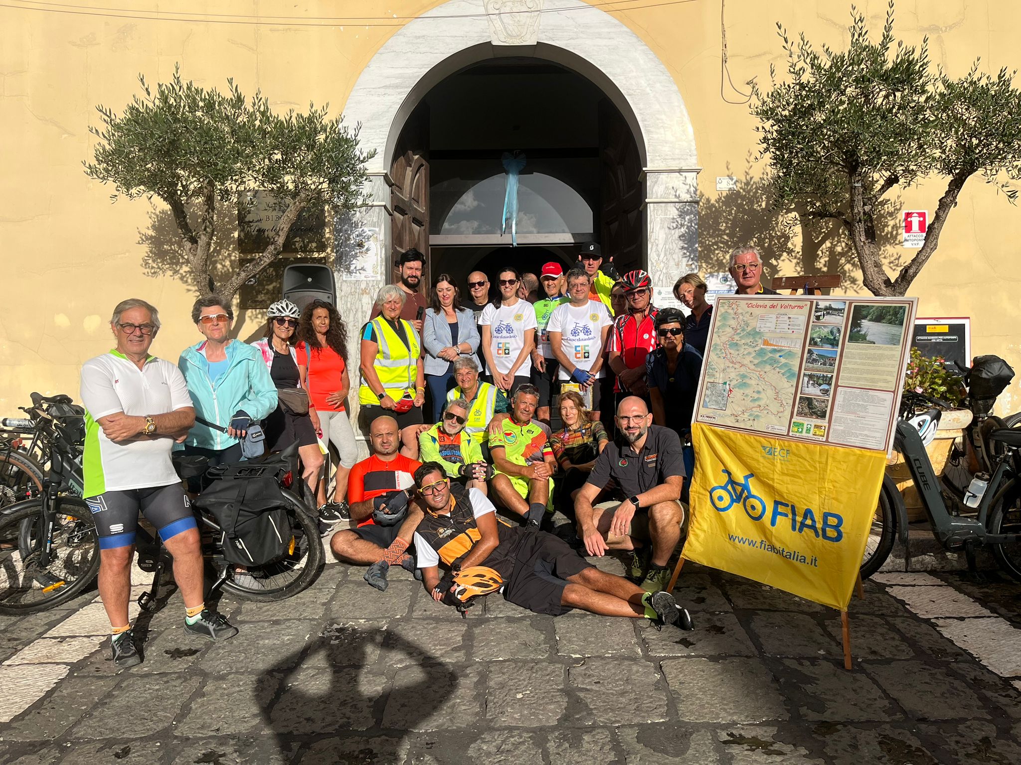 Partendo dalle sorgenti del Volturno di Rocchetta in provincia di Isernia, attraverso le bellezze paesaggistiche e culturali, tra strade interpoderali che raggiungono la nostra provincia con Capriati al Volturno, Quattro stradoni di Ciorlano, Mastrati di Pratella, si è giunti nel tardo pomeriggio a Vairano Patenora dopo 77 km dove i partecipanti sono stati accolti dall’amministrazione comunale con gli interventi della Vicesindaco Antonia Funaro e del consigliere delegato ad eventi e cultura Luca Ferdinandi. Sono intervenuti poi Carlo Scatozza presidente di Fiab Caserta in Bici e coordinatore regionale della rete associativa, Teresa Dandolo, Presidente Fiab Napoli Cicloverdi e Consigliere Nazionale Fiab per ribadire l’importanza del cicloturismo, non solo come forma di sport, né legato a singoli eventi, ma come forma di turismo per tutti in mobilità muscolare ma anche elettrica. Come in altre parti d’Italia è una forma di turismo ideale per le aree interne e che necessità di servizi ricettivi e attività poco impattanti come la manutenzione di alcuni tratti e cura della segnaletica negli anni.