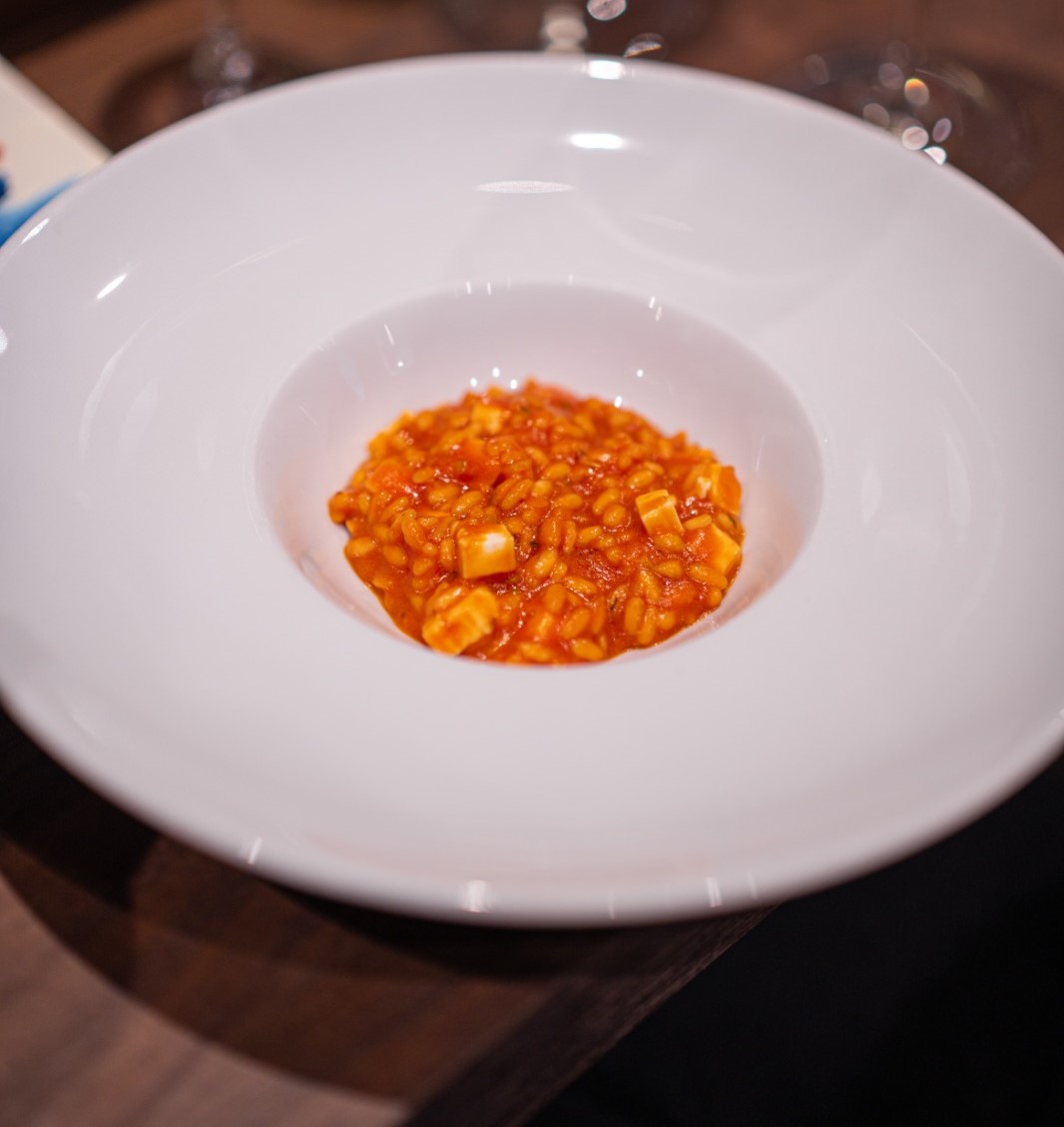 La proposta dello chef è un connubio di sapori che esalta la tradizione campana e la materia prima, in particolare i prodotti caseari, rivisitati ad arte in un percorso di gusto tra tradizione e innovazione.Da qui nascono la parmigiana espressionista e il risotto alla sorrentina. E non solo. C’è spazio anche per i dolci con il panettone del pastry chef Raffaele Mele e le praline al latte di bufala del pastry chef Ampi Benito Odorino.