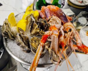 viola di Crotone, scampo imperiale, gambero gobbetto, ostrica cocollos numero 3, ostrica cocollos numero 5, ostrica tarbourie, in abbinamento il Franciacorta Nature 2021 Millesimato Franciacorta Docg – Bosio.