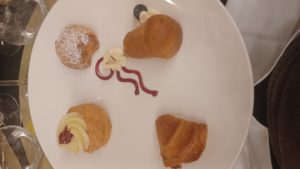 Su tutte le buone creazioni dello Chef Pasquale Cavallo ha vinto di sicuro il primo, una gran pasta mista di Gragnano, fagioli dente di morto di Acerra, calamari e mayo alle cozze, abbinato superbamente con il Vigna Caracci 2020 di Villa Matilde una delle cantine presenti alla serata, (speculare per storia e capacità di fare con l’altra presente seppur di province diverse). Il secondo ha avuto il merito di reinventare il pescato più amato dai napoletani, ovvero il Polpo , fatto ovviamente alla Luciana ma cotto a bassa temperatura, alla brace, glassato e con pomodorino arrosto ed olive, l’abbinamento regge benissimo con uno spettacolare Montevetrano 2012 di Silvia Imparato nei monti picentini con un blend di Cabernet sauvignon, merlot e Aglianico, dalle immense fragranze floreali e fruttate diventate balsamiche, è vivissimo questo tredicenne con ancora lunga vita davanti per chi è fortunato ad averne. Dolci della serata affidati a una eccellenza casertana; da Castelmorrone porta il suo carico di sapienza Guido Sparaco, pasticciere in grado di esser antico e moderno e, cimentato stasera con la tradizionalissima piccola pasticceria napoletana, ha dato come sempre il meglio di sé.